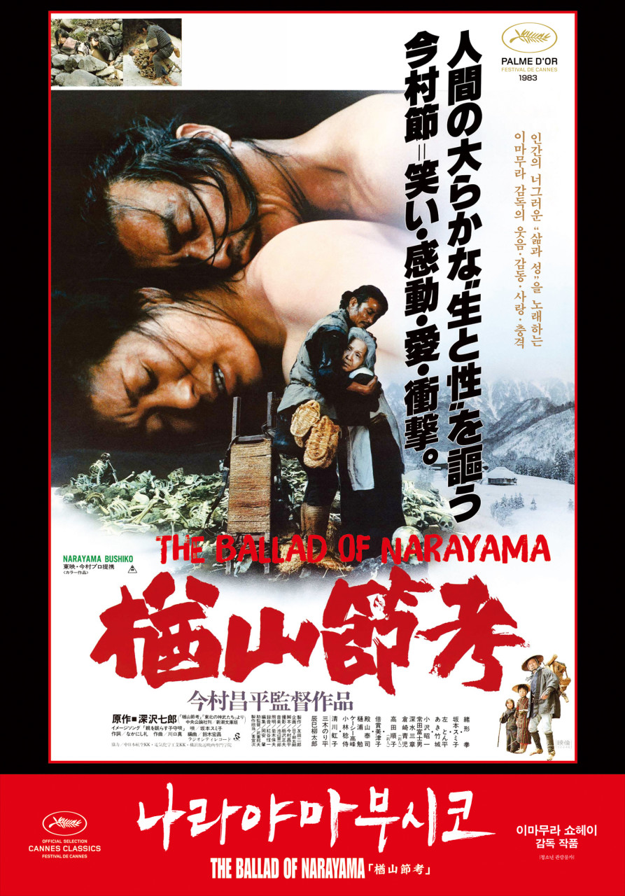 겨울은 고통의 계절이다. 척박한 토양에서 거둬들인 미약한 수확물로는 그들에게 겨울은 굶주림의 계절이기 때문이다. 겨우내 태어난 사내 아이들은 이웃의 논바닥에 버려지며 여자 아기는 한 줌의 소금에 팔린다. 남의 음식을 훔치는 건 가장 큰 죄이다. 그 가족은 산채로 매장된다. 그리고 70세의 노인은 나라야마 산으로 떠나야 한다. 살아있는 사람들에게 짐이 되지 않기 위해. 봄. 69세인 오린(사카모토 스미코 분)은 나라야마에 가기 위한 준비를 한다. 만나는 사람들마다 그녀는 이번 겨울에 나라야마에 갈 것임을 즐거운 얼굴로 일란다. 그런 어머니를 쓸쓸한 눈으로 바라보는 오린의 맏아들 다츠헤이(오가타 켄 분). 30년 전 자신의 아버지는 할머니를 버리지 않으려고 마을을 떠났고 그런 아버지를 평생 원망했지만 이제 아버지를 이해할 수 있다. 그러나 어머니는 아들을 다그친다. 여름. 다츠헤이가 새 아내 타마얀(아키 다케조 분)을 맞게 된다. 착하고 부지런한 새 며느리는 어머니의 마음에 쏙 들지만 이제 그녀는 할 일이 없어졌다. 그녀는 자신이 죽을 만큼 쇠약해졌다는 것을 알리기 위해 스스로 돌절구에 자신의 이를 부딪쳐 깨버린다. 고통에 못 이겨 찡그린 그녀의 얼굴은 온통 피투성이가 되지만 입가엔 희미한 미소가 감돈다. 가을. 날이 선선해질수록 다츠헤이의 마음은 괴롭다. 그러나 그 해 가을은 유난히 흉작이었다. 어머니를 붙잡기엔 양식이 턱없이 부족했다. 어머니는 아들에게 말한다. "내일 새벽, 난 나라야마에 갈 거다. 사람들을 불러다오." 그날 밤, 산에 가기 위한 행사가 이루어진다. "산에 가실 때는 법을 꼭 지키셔야 합니다. 첫째, 산에 들어가면 아무 말도 하지 말 것. 아무도 모르게 새벽에 집을 떠날 것..." 천천히 주의사항이 말해질 때마다 다츠헤이의 얼굴을 점점 더 어두워진다. 새벽. 어머니는 아들에게 업혀 산으로 간다. 험한 산기슭을 기를 쓰고 가는 다츠헤이. 금방이라도 눈물이 쏟아질 것 같은 붉어진 눈을 부릅뜨고 그는 정상으로 향한다. 바위에 차여 발톱이 빠지고, 비탈 아래로 미끄러지기도 하지만 그는 어머니를 내려놓지 않는다. 나라야마의 정상에서 삶을 마감한 노인에게는 천국이 기다린다는 전설. 그에겐 정상에 가는 것만이 어머니께 드릴 수 있는 마지막 마음이었다. 집에 돌아온 다츠헤이는 아들 케사키치(쿠라사키 세이지 분)의 노래를 듣는다. "할머니는 운이 좋아. 눈이 오는 날에 나라야마에 갔다네" 그는 가족들을 돌아본다. 그들은 이미 어머니의 옷을 나눠 입고 있다. 그리고 마을은 눈으로 덮여있다.