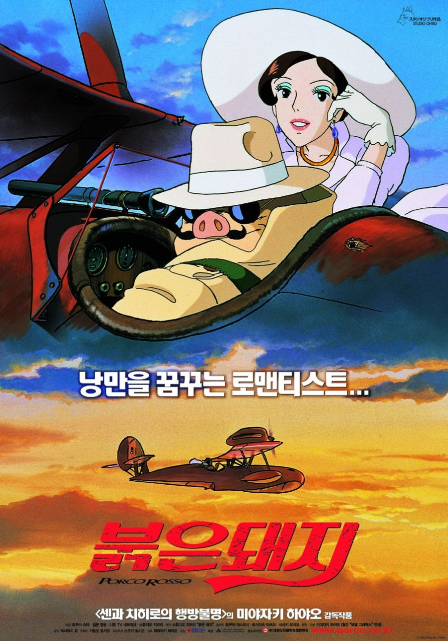 Crimson Pig (붉은 돼지)는 하야오 미야자키 감독이 1992년에 선보인 독특한 스튜디오 지브리 애니메이션으로, 전투기 조종사인 돼지 모험가 포르코 로소의 이야기를 그립니다. 이 영화는 유쾌한 액션과 아름다운 비행 장면, 그리고 인간의 내면을 들여다보는 깊이 있는 스토리를 담고 있어, 어린이와 성인 모두에게 사랑받는 작품입니다. 포르코 로소의 비행기와 함께 펼쳐지는 이탈리아의 푸른 바다와 하늘을 배경으로, 그의 특별한 이야기가 시작됩니다.