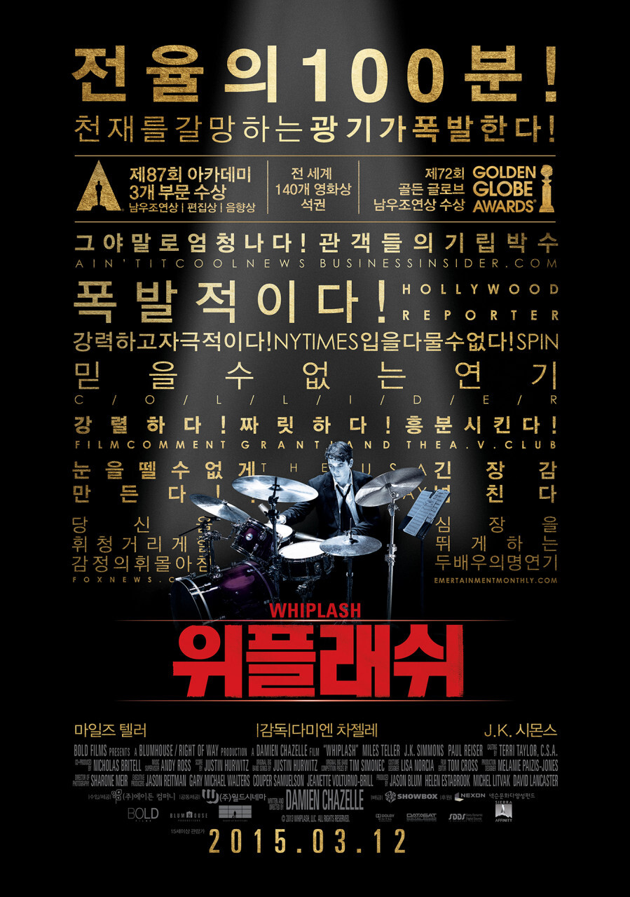 재즈 음악의 세계에서 우수성을 향한 끊임없는 추구를 탐구하는 흥미진진한 영화인 "Whiplash"의 짜릿한 강렬함에 휩쓸릴 준비를 하세요. Damien Chazelle이 감독한 이 영화는 비평가들의 찬사를 받았으며 젊은 드러머와 명문 음악원의 까다로운 강사 사이의 소란스러운 관계를 따릅니다. "위플래쉬"를 영화적 역작으로 만드는 가슴 뛰는 드라마와 짜릿한 공연에 저와 함께 참여하세요.